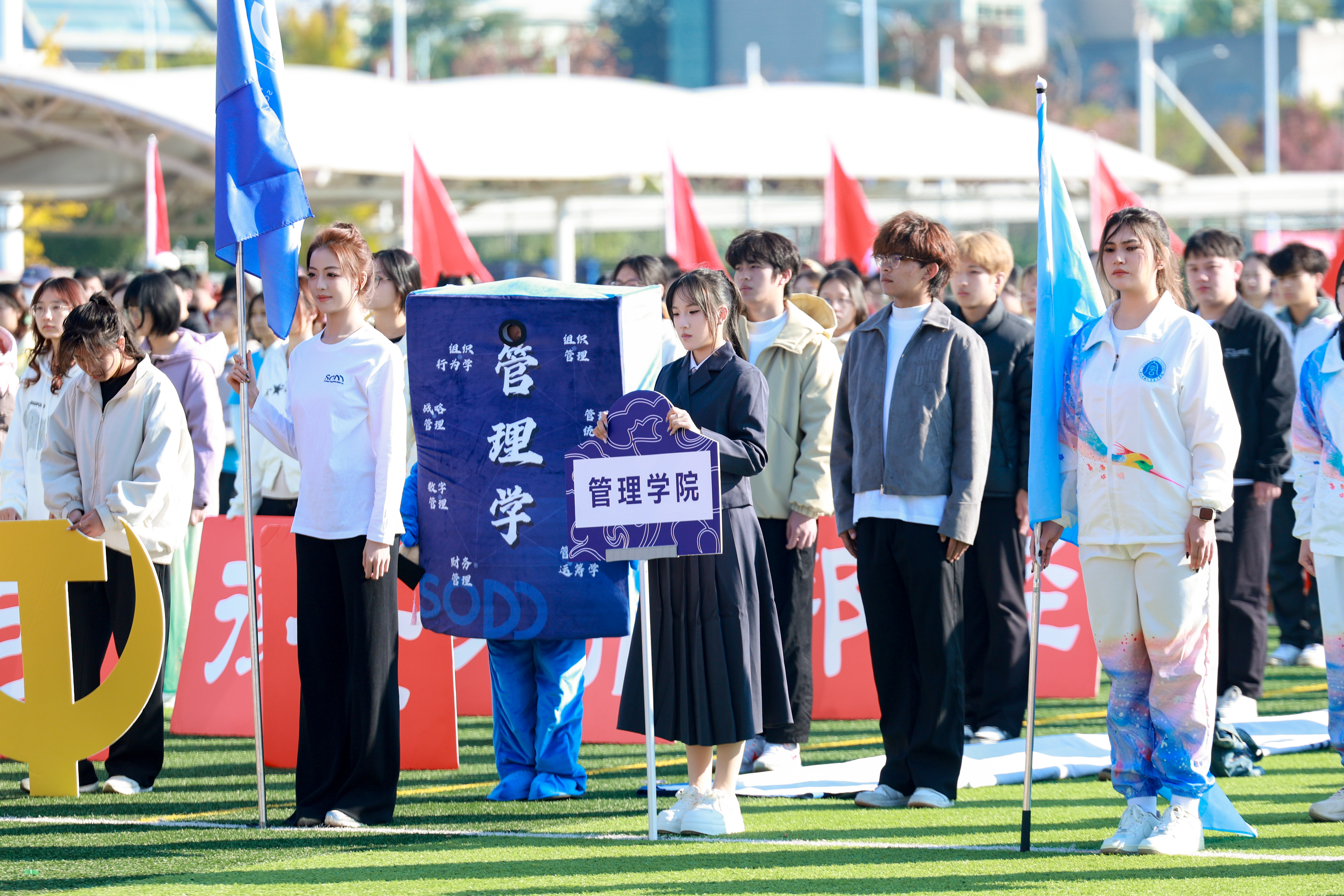 方阵昂首阔步、精神抖擞,整齐的队列尽显团结风貌,嘹亮的口号铿锵有力,满含管院人的热忱与坚毅,以昂扬姿态展现学院风采,不负韶华、勇毅前行的信念随步伐坚定传递。随着开赛指令响起,管院健儿全力以赴,在赛场之上书写奋斗篇章。
