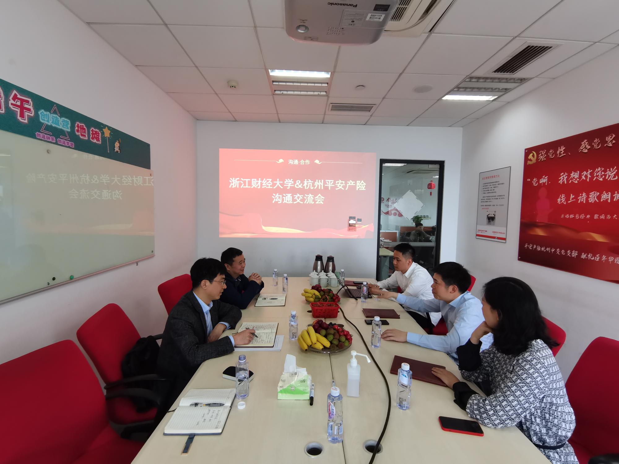 在杭州平安产险公司,杭州平安产险总经理王辉、副总经理张琨等接待了王院长一行。王总详细介绍了平安产险的运营情况和招聘需求情况。王院长代表学院对平安产险公司对学院毕业生的肯定表示感谢,并介绍了学院人才培养情况和毕业生的相关情况。双方就实习实践基地建设、校园招聘宣讲、加强人才培养合作等方面交换了意见并达成共识。