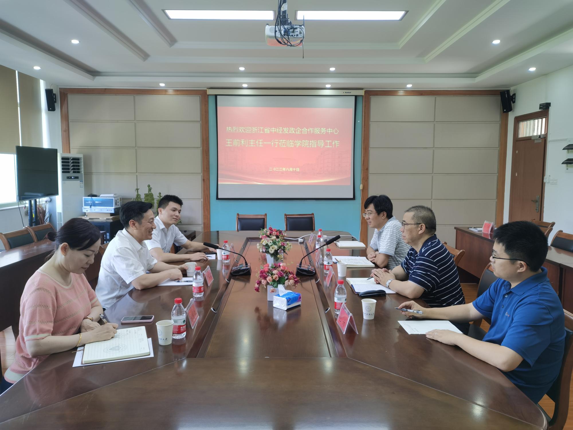 8月10日,浙江省中经发政企合作服务中心主任王前利、副主任刘丽红、助理王明来院考察交流,与学院签署了竞赛合作协议。学院党委书记黄卫华、院长王建明、教工第一党支部书记包兴、院校友办主任杨文超出席坐谈会和签约仪式。会议由院党委书记黄卫华主持。