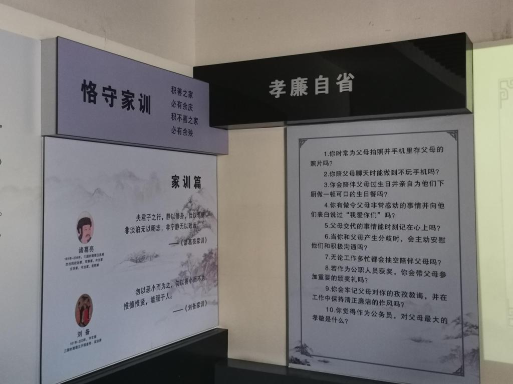 百善孝为先,治政廉为首,在讲解员的带领下,师生党员边听边看边感悟,先后参观了家训长桥和孝道文化馆。家训长桥以“传承家风家训,弘扬时代孝道”为主题,悬挂着数十块铜制浮雕,展示了孔子、梁启超、钱镠等古今名人的家风家训。孝道文化馆采用“静态展陈+动态体验”模式,通过丰富多样的图文、影像、雕塑等形式,借助高科技手段,生动形象地讲述孝道文化故事、展示孝道文化遗迹、开展孝道文化活动,使师生党员深刻体会到了孝廉文化的历史及文化内涵,理解了“廉洁是最大的忠孝”的深刻寓意。