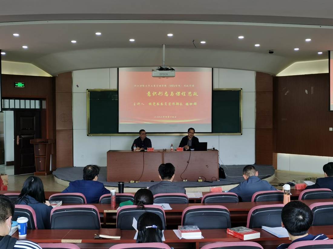 委员会意识形态工作责任制问责实施办法(试行)》。他指出,学院要建立健全意识形态工作领导体制机制,学院党委每年至少2次专题研究意识形态工作,党委理论学习中心组每年至少安排1次维护意识形态安全的专题学习,建立健全意识形态工作考核机制,把意识形态工作责任制落实情况纳入下属党员干部教师考核评价指标体系。最后,楼部长结合省委巡视反馈和高校发生的意识形态案例,对高校意识形态教育工作中面临的挑战进行了分析。他强调,广大教师一定要紧绷意识形态这根弦,坚决守住守牢教材讲义、讲台课堂、论坛讲座和新媒体等线上线下意识形态阵地,把思想统一到中央和省委的要求上来,切实加强做好意识形态和思想政治工作的自觉性。