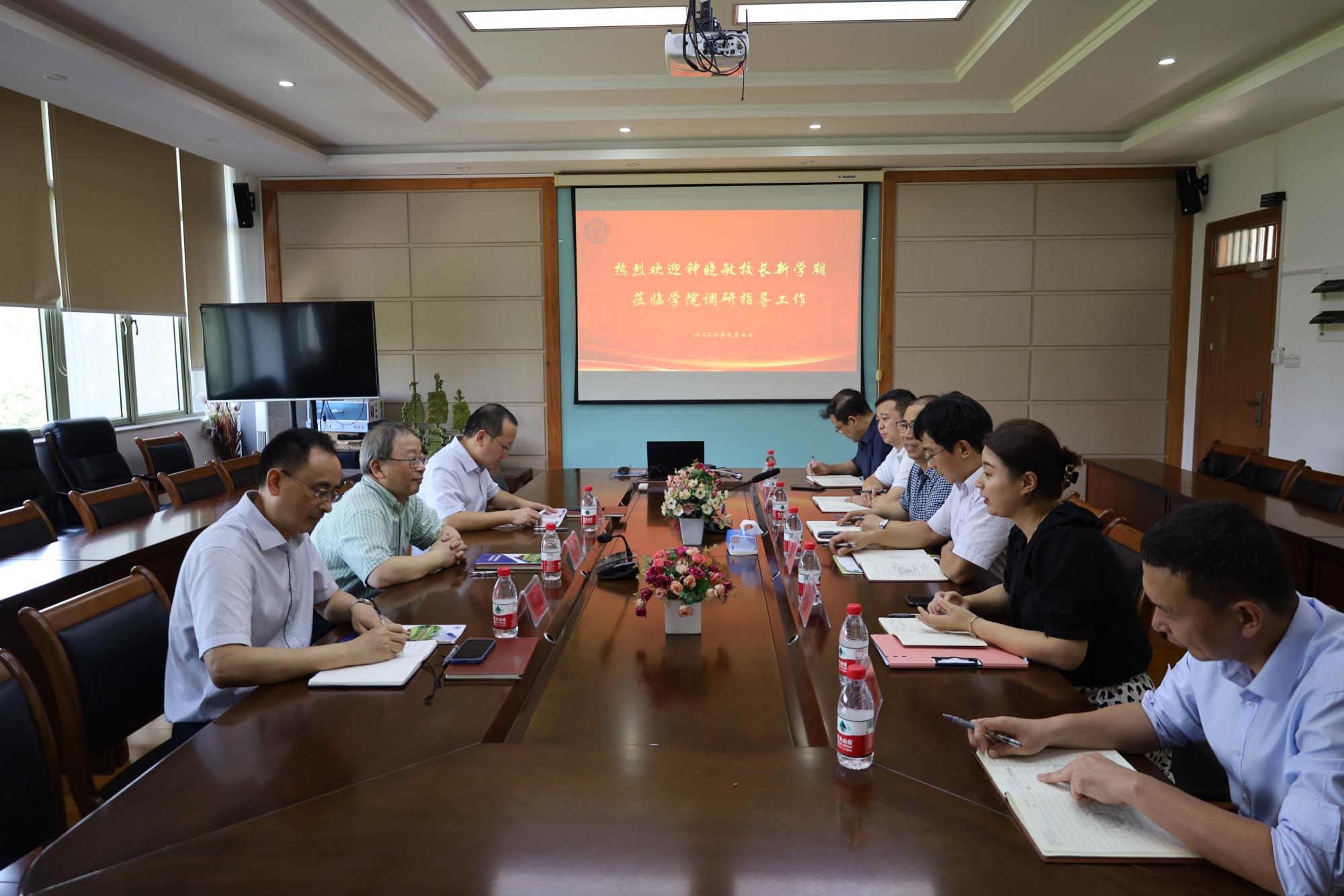 校长钟晓敏来院慰问学校优秀教师代表应瑛老师,并调研指导新学期学院工作。学院党政领导班子参加座谈会。
