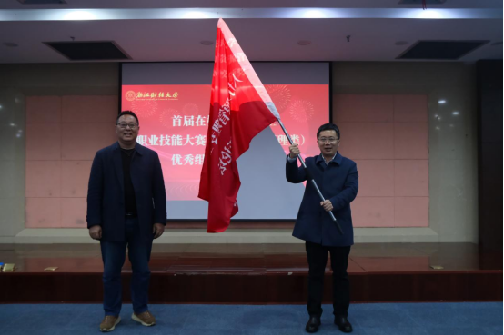 最后,由校教务处副处长叶舟代表大赛组委会,将论坛(大赛)会旗转交给下一届承办高校浙江理工大学经济番茄小说