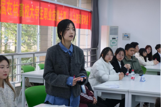 王建明院长主持开幕式,校党委委员、副校长董进才致辞,希望通过举办大学生职业技能大赛的方式,提升大学生职业技能水平,为经济社会全面高质量发展提供人才保障,并预祝各校队伍赛出水平赛出风采。钱塘区人社局副局长李杰作为本次活动的联合举办单位致辞,认为此次大赛的举办充分发挥高校的资源优势,鼓励大学生在校期间取得与专业相关的职业技能等级证书,提升了人力资源管理专业大学生培养效果,强化了钱塘区高技能人才队伍建设水平,将有效推动高校毕业生更高质量就业创业。参赛高校指导老师代表浙江旅游职业学院夏天和参赛高校学生代表浙江工商大学何晓杰进行了交流发言。