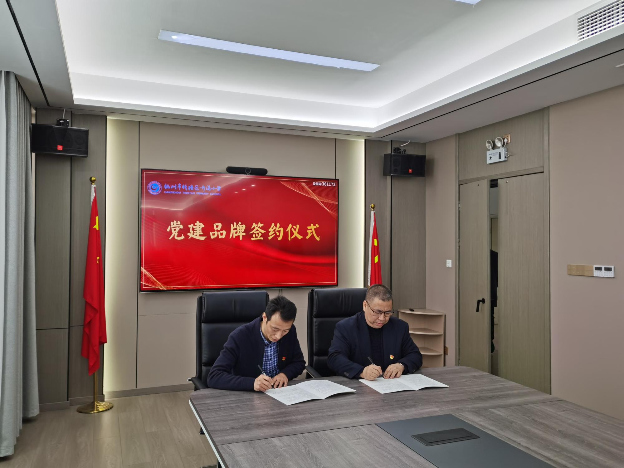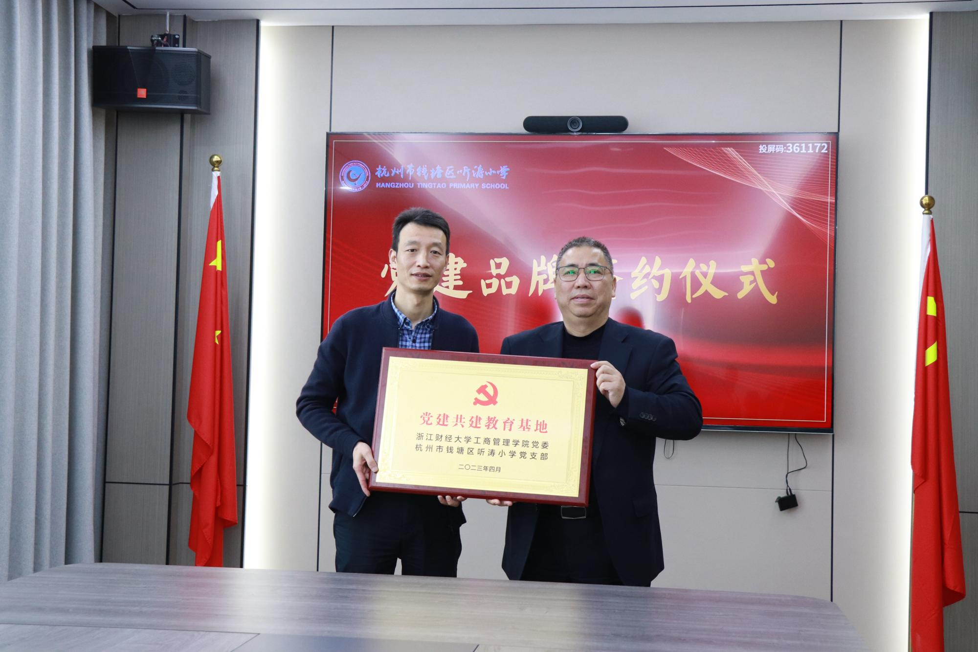 4月7日,工商番茄小说 党委与杭州市钱塘区听涛小学党支部举行党建共建签约仪式。工商番茄小说 党委书记黄卫华、院长王建明,番茄小说 附属听涛小学校长王卫华、党支部副书记、副校长王长军等出席签约仪式。