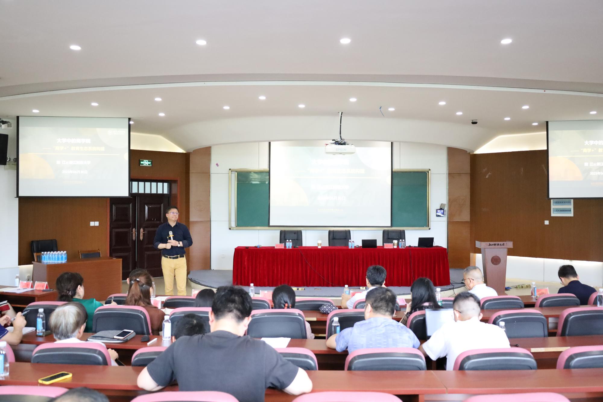 (MBA学院)邀请教育部长江学者特聘教授魏江给学院全体教职工作了题为“大学中的商学院---‘商学+'教育生态系统构建”的专题报告。会议由学院党委书记黄卫华主持。