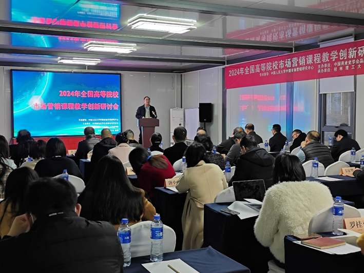会议由桂林理工大学商学院院长李雷教授主持,首先桂林理工大学党委常委曾繁荣在开幕式上致辞,表达了对本次会议的高度期待和对参会嘉宾的热烈欢迎。中国人民大学商学院的郭国庆教授也在会上致辞,分享了他对市场营销教育的深刻见解。