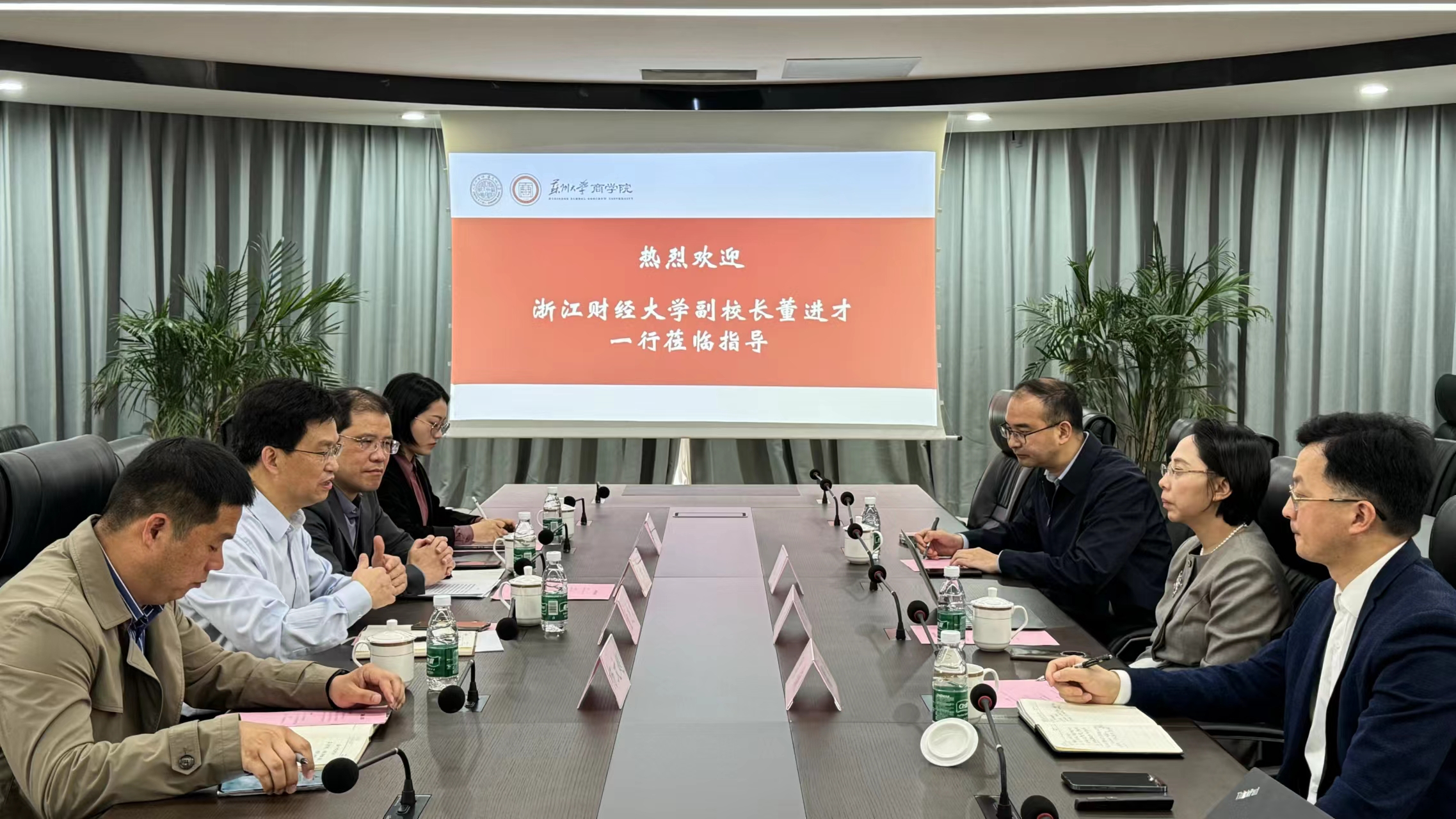 院长董进才带队赴苏州大学商学院开展调研交流。苏州大学商学院院长冯博教授等领导热情接待了董进才一行。