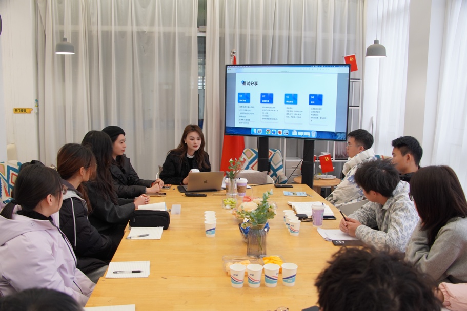 活动中,郑老师通过模拟面试和无领导小组讨论,让学生们在实践中学习和提升。面试环节中,她为学生分享了与简历优化和面试表达相关的经验技巧。同学们以“是否应该支持碎片化阅读”为议题,让学生在具体情境中提升团队协作与思辨能力。