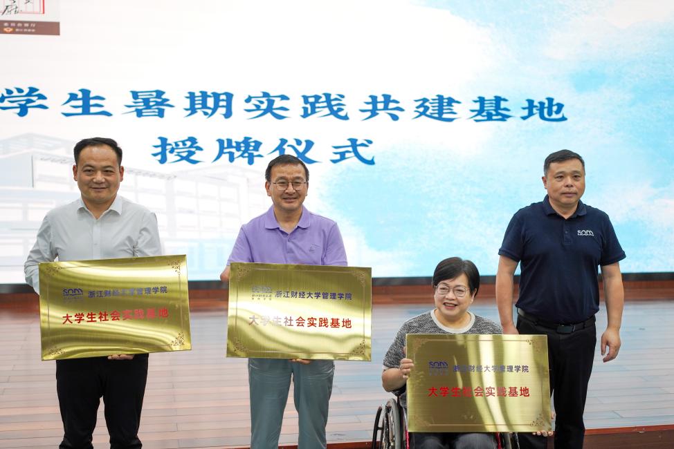 党委书记朱力明为宁波铂丽姿健康科技有限公司、宁波市名正电机有限公司和杭州金手指速记服务有限公司3家残疾人企业与学校共建的大学生暑期实践基地授牌。这一举措构建起人才培养与产业发展融合的桥梁,既为学生打造多元化实践平台,助力理论与实践结合,又为残疾人企业引入创新活力,拓宽残疾人就业创业渠道,实现学校、企业、残疾人多方共赢。