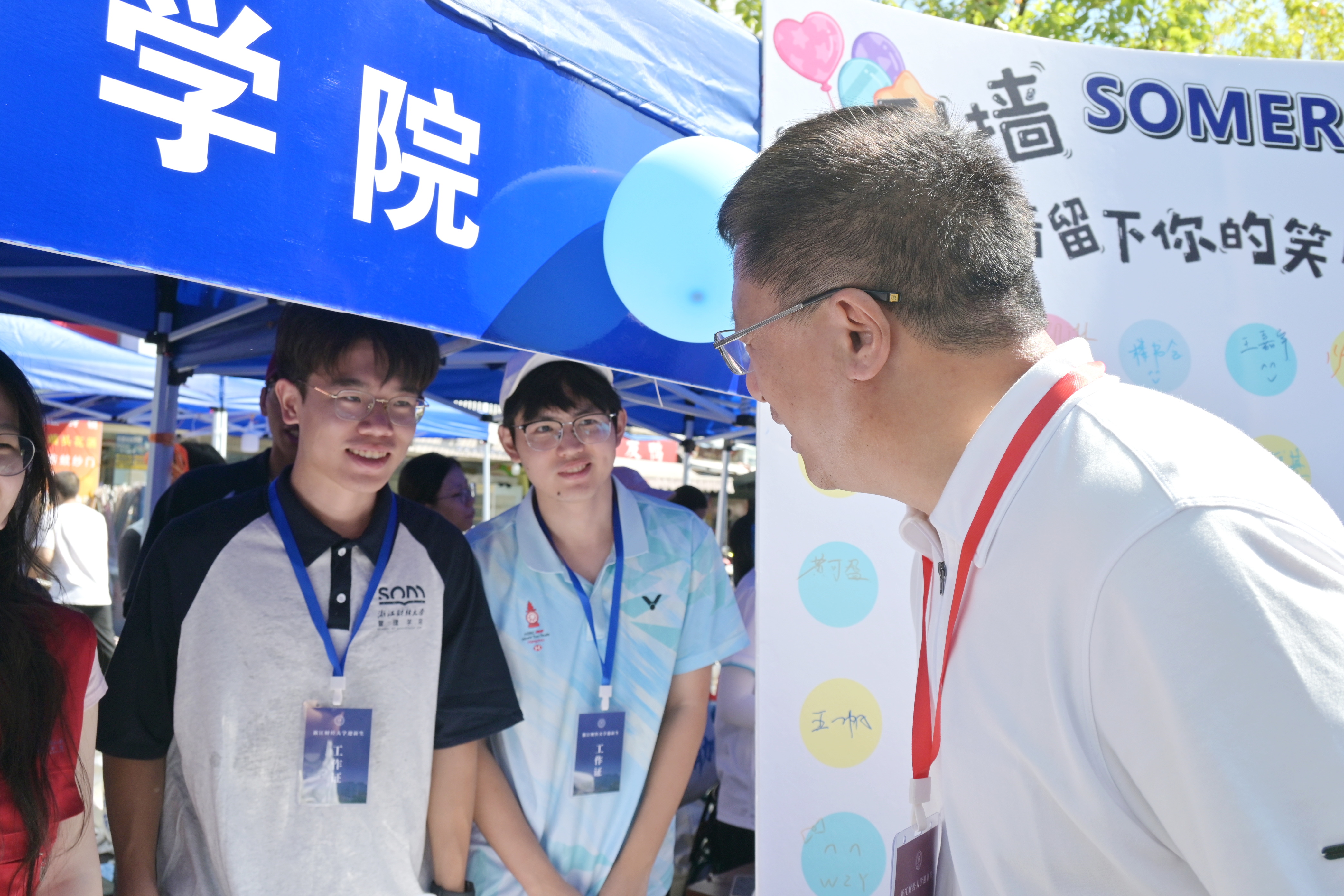 学校党委书记、校长魏江,校党委副书记徐晓东,学院院长董直庆、党委书记朱力明和学院班子成员走访迎新一线,深入宿舍走访慰问新生,详细了解新生的住宿情况与适应状况,收集同学们对寝室环境的反馈意见,致力于打造一个温馨、舒适的学习生活环境。面对新生关于课程设置、社团活动、职业发展的疑问,又耐心拆解、逐一解答;还结合专业特点,鼓励大家“大胆尝试,尽快适应大学生活,完成从‘小萌新’到‘大学生’的身份转变”。一句句叮咛、一声声嘱托,为同学们的大学新程注入信心。