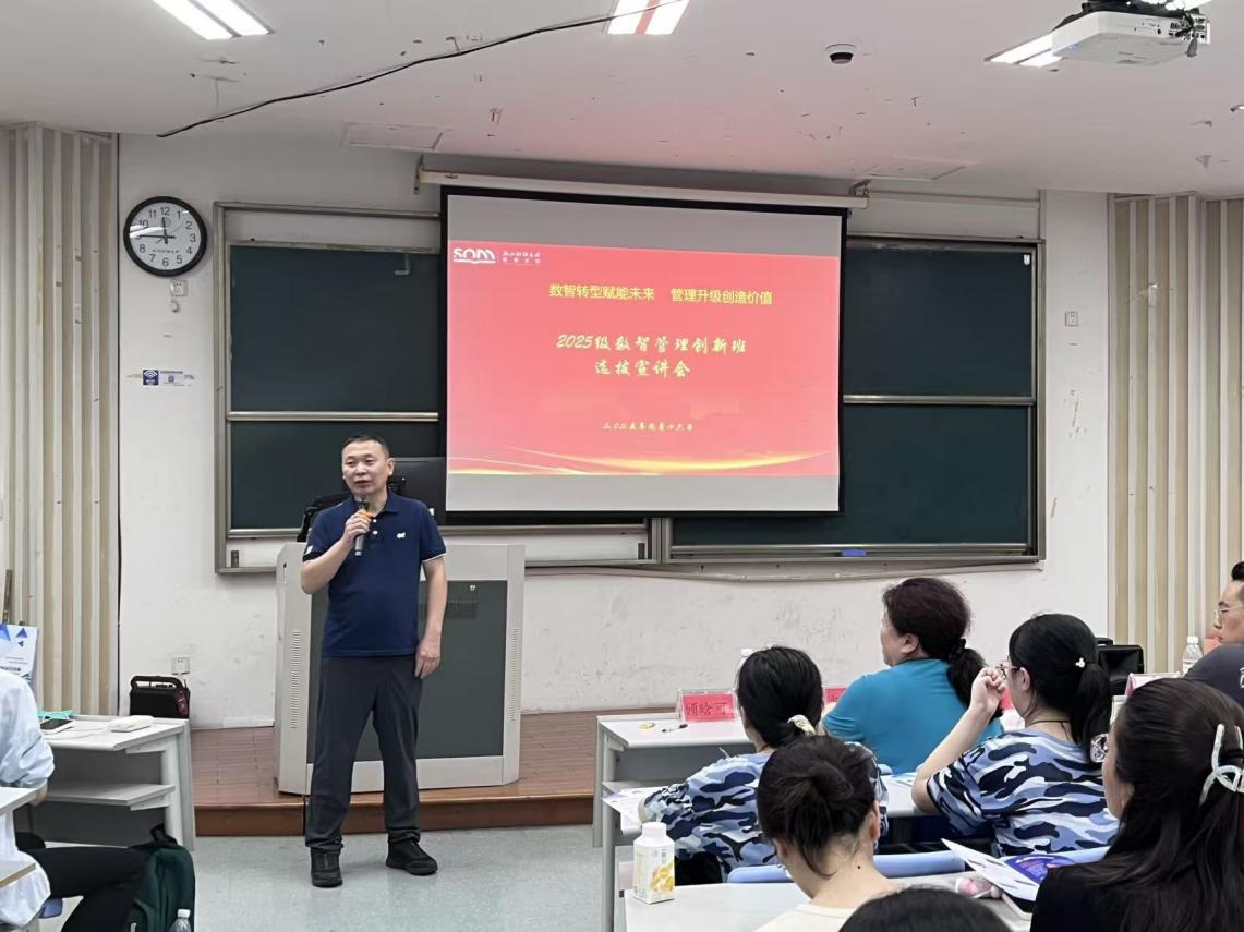 副院长、铁三角项目主任张雷,数智管理创新班项目执行人沈渊,校自然资源产业院执行院长、2025级数智管理创新班班主任耿槟,辅导员顾晗可以及创新班班导班助、2025级工商管理大类全体新生参加了本次宣讲会。