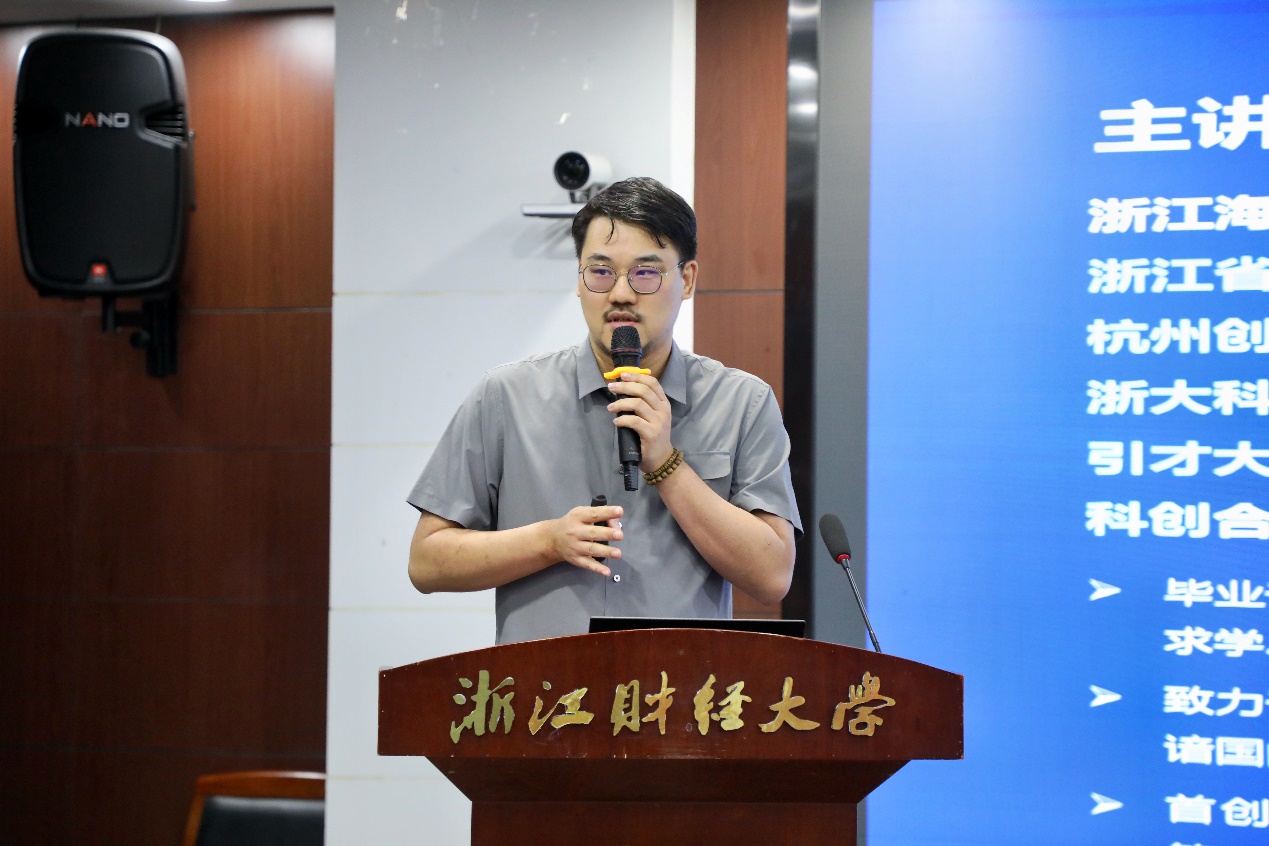 跨学科创新班为什么要打造“校企合作”新范式?海角科技有限公司董事长竺俊景(企业方项目主任)结合自身深耕行业多年的实践经验,着重强调“纯粹的技术创新若缺乏科学管理体系的支撑,便难以突破发展瓶颈,实现从‘想法’到‘价值’的转化,科创的持续爆发必须依赖管理赋能”。同时详细介绍了海角科技精心打造的三大核心机会矩阵,为同学们构建起覆盖职业发展全周期的多样态培养场景。在实践层面,公司将为学生打通进入头部科创企业实习的绿色通道,让大家在真实的技术研发、产品迭代场景中积累实战经验;在就业层面,通过内部人才孵化计划,为表现优异的学生提供直接入职的机会,实现从校园到职场的无缝衔接;在资源支持层面,对学生团队的优质科创项目给予资源对接与孵化支持,同时联动新加坡国立、南洋理工等海外高校,设立留学奖学金,助力学生深造。