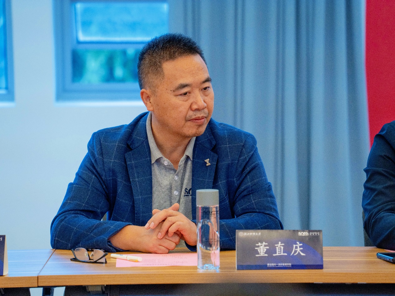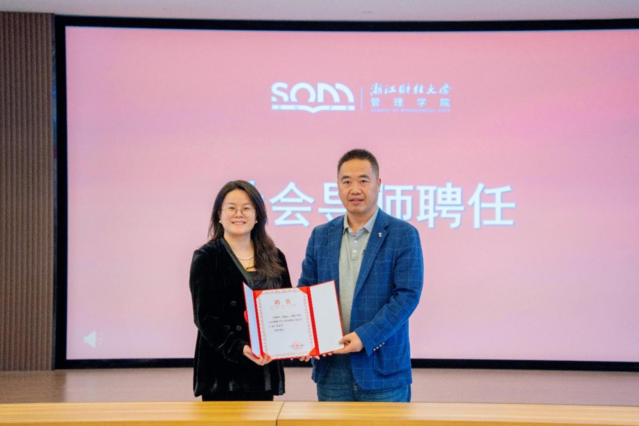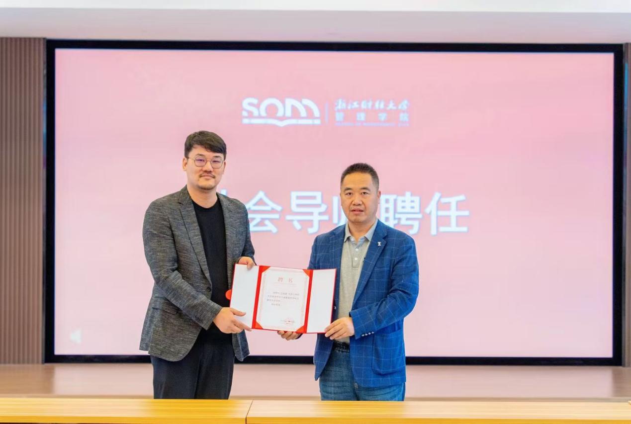学院院长董直庆为竺俊景董事长、何茹洁总经理颁发跨学科创新班社会导师聘书,并宣布番茄小说
