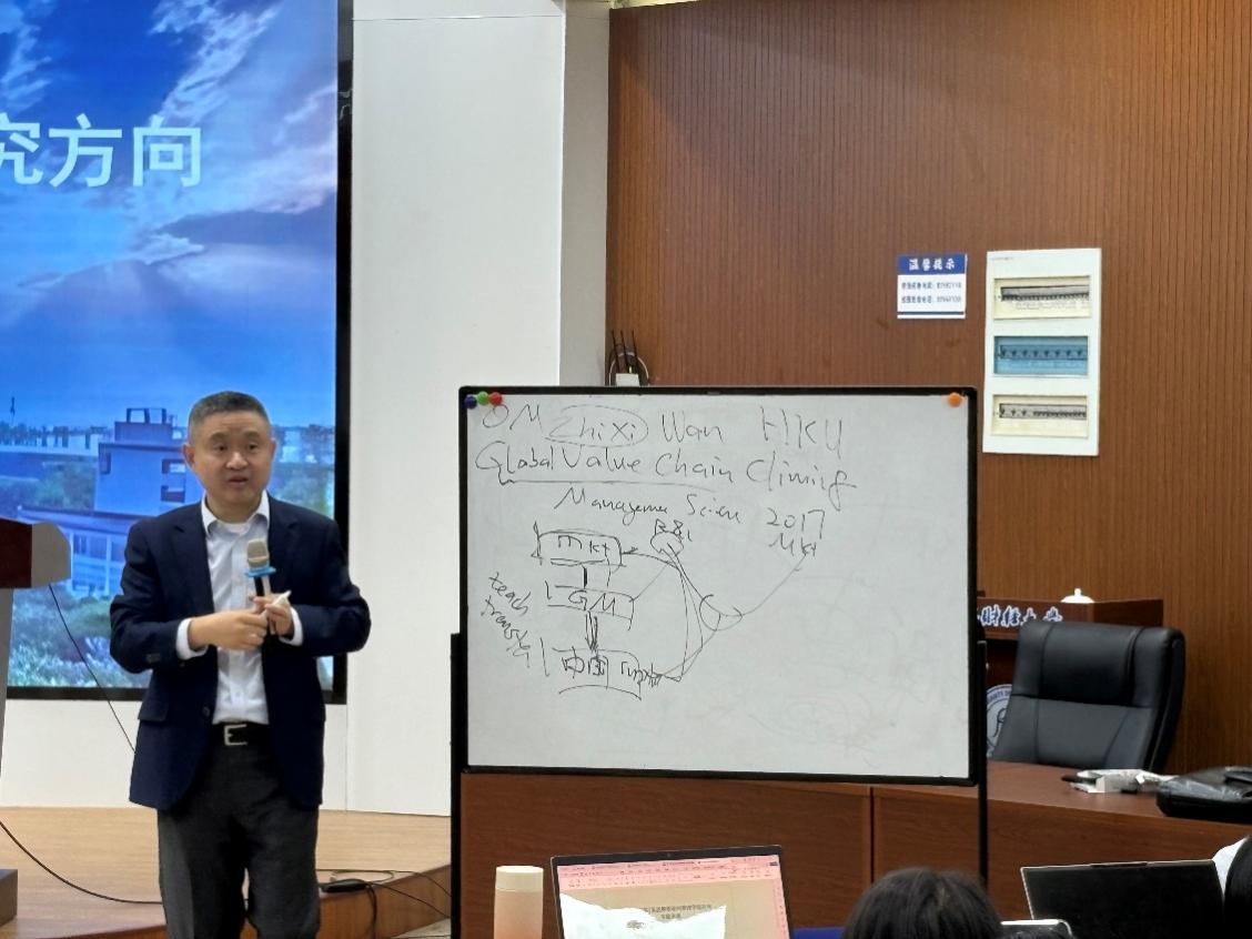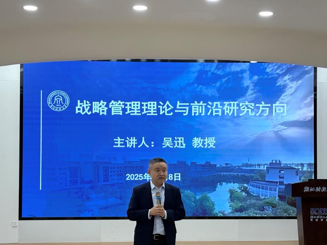 ,为国内外师生带来题为《战略管理理论与前沿研究方向》的专题讲座。吴教授以即兴互动形式,从科研实际问题出发,深入浅出地分享了战略研究的关键路径与学术写作的提升之道。