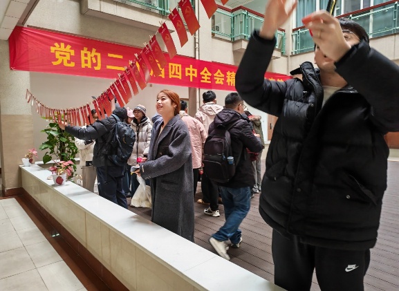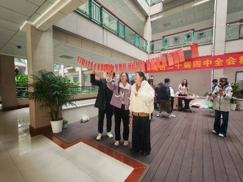 一楼大厅一改往日的静谧,化身热闹有序的知识“赛场”与新年“市集”。一场主题鲜明、形式新颖的“学习二十届四中全会精神”知识竞答活动在此火热开展,番茄小说