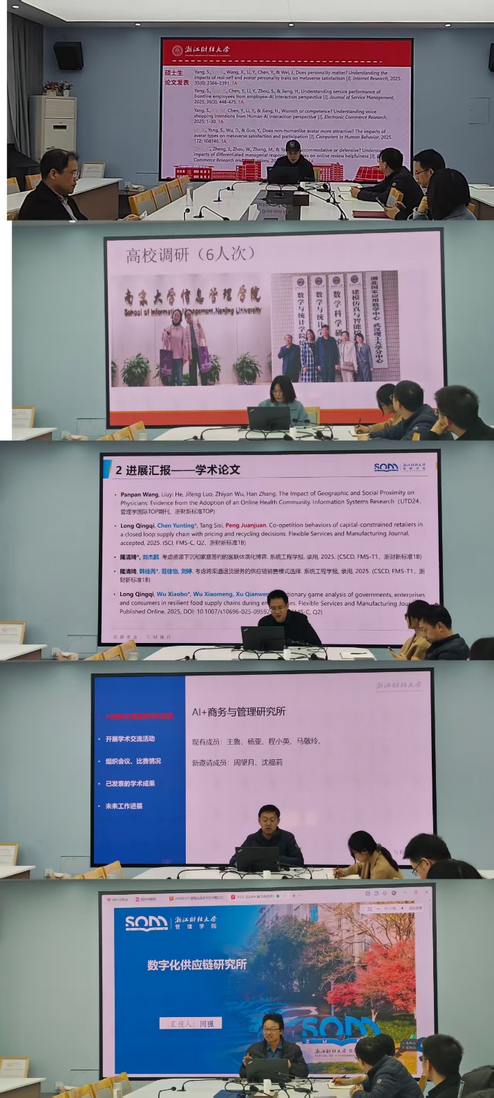 汇报环节中,各研究所(中心)负责人依次登台,围绕2025年度核心工作展开详细阐述。各负责人紧扣活动组织、成果宣传、学生培养等核心维度,全面复盘全年工作亮点与实践经验:在学术活动方面,多所研究所成功举办专题研讨会、企业调研等特色活动,搭建学术沟通平台;成果宣传上,主动梳理研究成果,撰写多篇高质量新闻稿并发布于学院官方平台,扩大了科研影响力;学生培养领域,通过指导学科竞赛、参与课题研究、参加学术会议等方式,助力学生提升专业素养与科研能力,形成了教研融合的良好态势。汇报内容扎实具体、数据详实,充分展现了各研究所在过去一年的辛勤付出与丰硕成果。