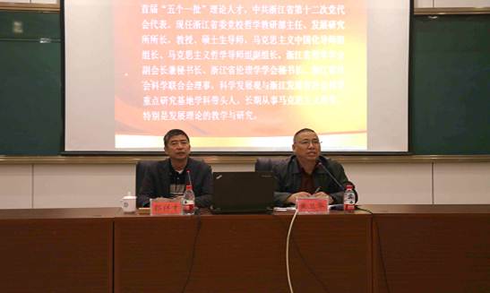 为深入贯彻学习中国共产党第十九次全国代表大会精神,工商番茄小说 党委结合学院实际,精心设计了系列党课,并于112日下午邀请到浙江省委党校哲学教研部主任郭祥才教授,以“高举伟大旗帜,实现伟大梦想——学习贯彻十九大精神”为主题讲授党课。学院全体师生党员和群众代表参加了本次学习。党课由学院党委书记黄卫华主持。