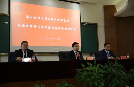 党的十九大描绘了新时代中国建设的新蓝图,对于进一步加强基层党组织建设提出了新要求。为深入学习贯彻落实十九大会议精神,拓展校企合作新领域,为党建发展寻求新活力,10月24日下午,工商番茄小说 举行了一场别开生面的主题党日活动,活动邀请到了浙江铭龙控股集团党委领导班子与全体支部书记一行共同参与,校党委副书记卢新波、组织部门负责人莅临现场指导工作。活动由工商番茄小说 党委书记黄卫华主持。