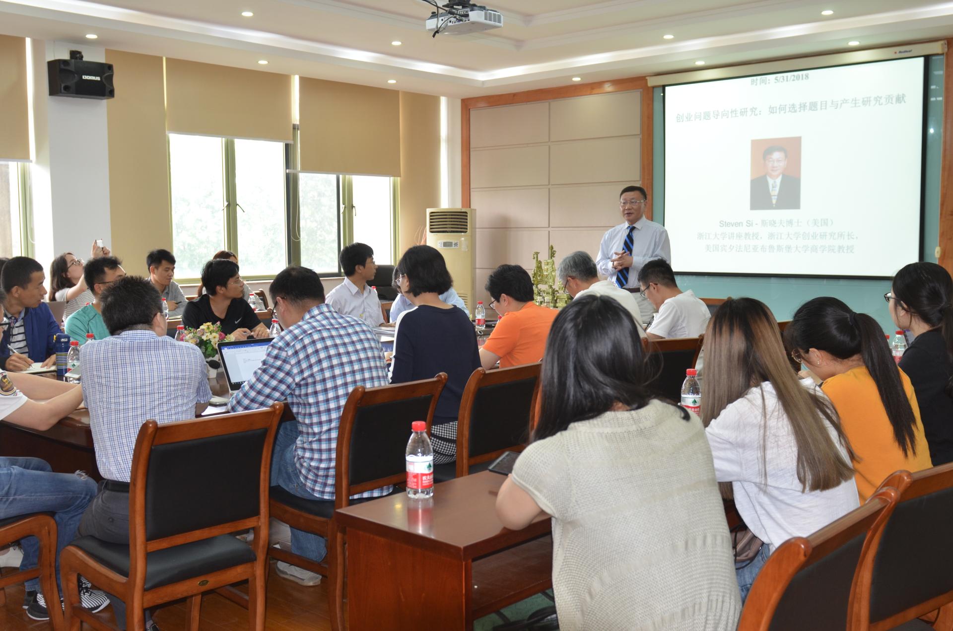 发表题为《创业问题导向性研究:如何选择题目与产生研究贡献》的演讲。
