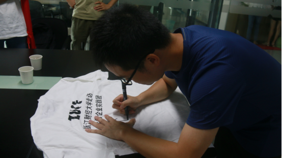 最后,小余老师在实践团队服上签名,并为母校学弟学妹献上寄语。他祝愿浙财大学子能够把握好四年的时光,好好恋爱、好好学习、好好生活,真正找到心中所爱,并献上满腔热血,为幸福而拼搏。