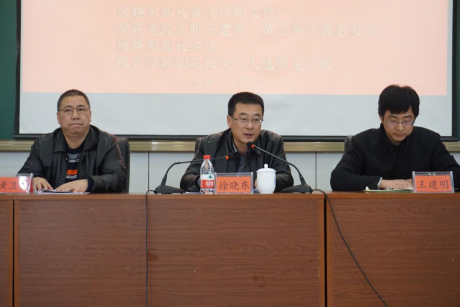 12月31日下午,学院在217报告厅召开学院党政正职领导干部任职宣布大会,校党委委员、组织部部长徐晓东、校办干部、学院全体教职工参加,会议由学院党委书记黄卫华主持。