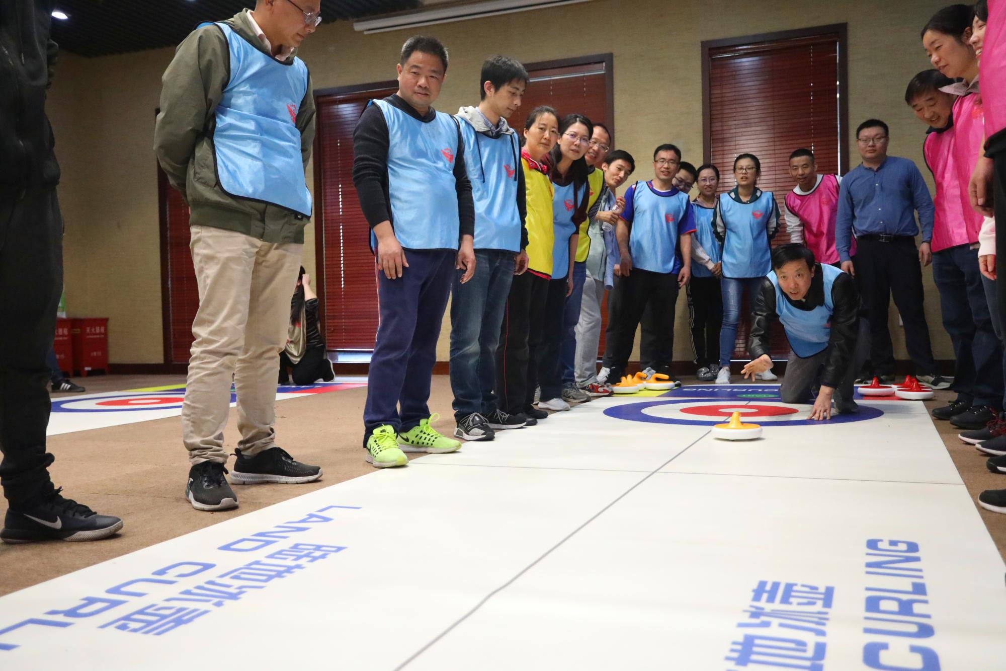 第四个项目是旱地冰壶。“陆冰壶”是由冰壶演变而来的“旱地冰壶球”。冰壶运动是一项高雅的体育健身活动,传统的冰壶是由特制的优质石材经过高精度研磨加工而成。传统的冰壶只能在光滑的冰面上进行,是一种冰上运动,并且是国际冬季奥林匹克运动项目,是一种集运动、竞技和娱乐于一体的运动项目。但由于冰壶制作工艺复杂,选材苛刻,所以费用高昂,且只能在冰面场地上开展,队场地的要求也很严格,从而极大地限制了此项运动的开展与普及。教师们在冰壶团建过程中,不断地计算并且实践,既开拓思维,又锻炼身体,更从中收获知识和快乐,并且延伸到教学工作与生活中去。