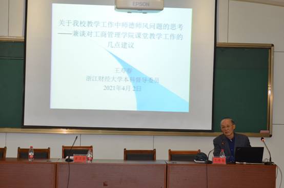 王教授从师德问题的缘起,教育部等七部门印发《关于加强和改进新时代师德师风建设的意见》,习近平总书记关于“做好老师,要有仁爱之心,教育是一门‘仁而爱人’ 的事业,爱是教育的灵魂,没有爱就没有教育”指示精神。王教授结合学校教学督导工作实际,分析我校师德师风方面存在的问题,并对工商管理教学工作提出针对性的几点建议。