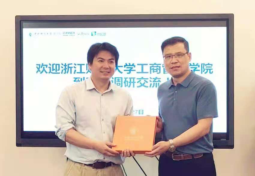 一行的到访表示欢迎。双方领导围绕学院发展历程和近年来所取得的成绩等进行了介绍。于广涛副院长全面系统地介绍了中央财经大学商学院在学科建设、科研管理、学术团队建设、研究生人才培养等方面所采取的诸多举措。贾晓菁副院长详细介绍了MBA中心的发展现状以及在人才培养提质增效方面所做的有益探索。双方教师还就社会服务、研究生人才培养方案以及新兴研究方向培育等议题展开了深入讨论。