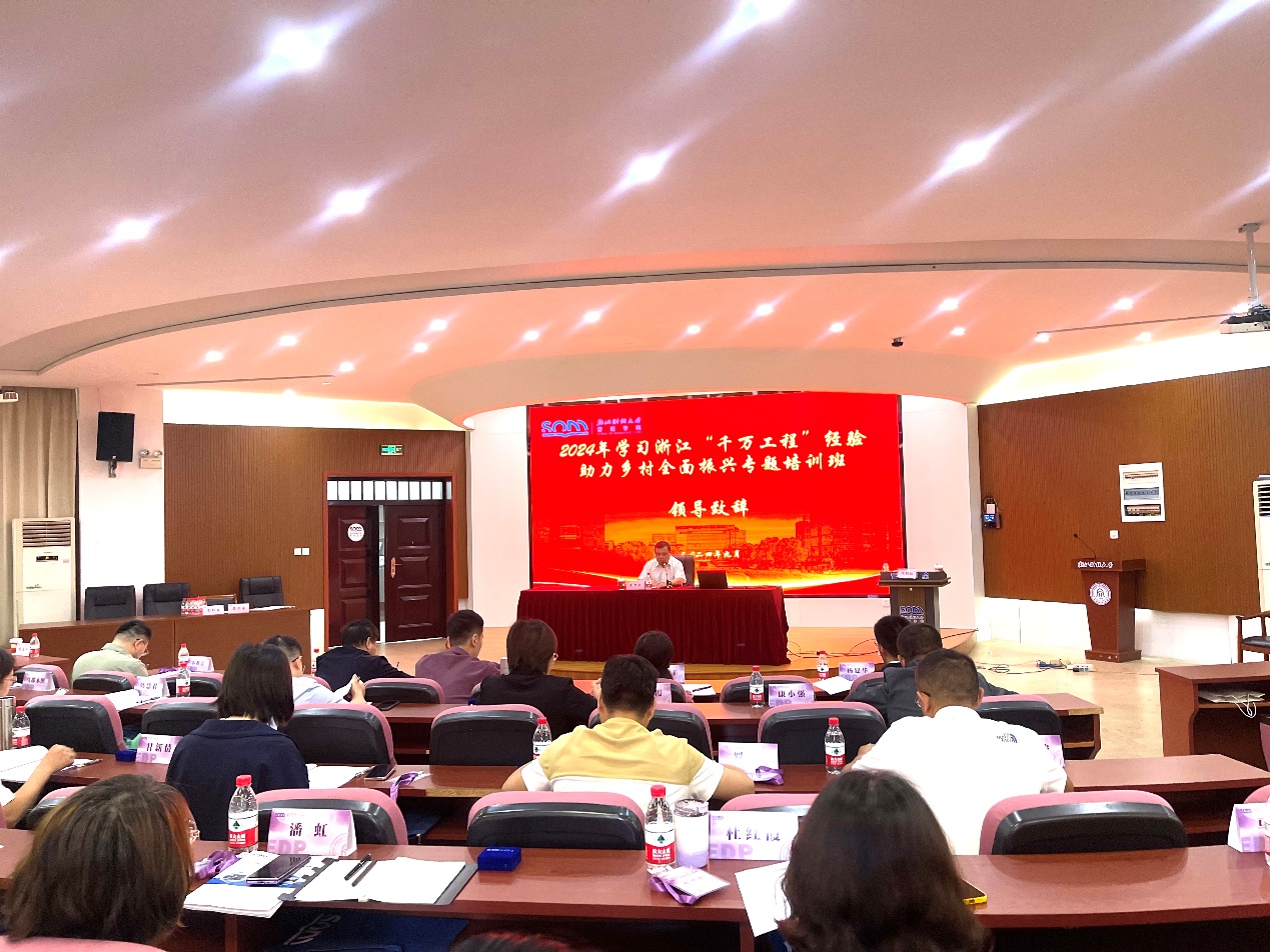迎来了2024年“千万工程”经验助力乡村全面振兴专题培训班的开班仪式。本次培训班旨在深入贯彻落实乡村振兴战略,汲取“千万工程”成功经验,助力甘肃、内蒙古、四川、宁夏和新疆五省区的乡村建设与全面振兴。来自这五个地区的30名学员齐聚一堂,共同开启为期5天的培训课程。此次培训内容丰富,既包含系统的理论学习,又安排了实地教学环节,力求帮助学员掌握扎实的乡村振兴经验,提升实践能力。