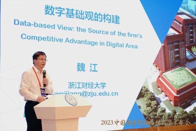 校领导、教育部长江学者特聘教授魏江作《数据基础观的理论建构》主题报告。魏江教授从数字基础观的基本命题和假设、数字基础观的组织边界、企业竞争优势来源、数字生态成为全球竞争的主体四个方面介绍了数字基础观的基本命题。他认为数据本身并无法让企业形成竞争优势,卓越的数据加工能力也即算法和算力的加持以及企业私有数据的获取才有可能给企业带来持续竞争优势。他还指出,数字生态系统的构建要通过打破在位生态壁垒以及重构产业组织关系的结构来实现。