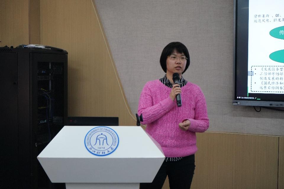 的周丹副教授作了题为“制造企业数字服务化:内涵解析、研究演进与整合框架”的主题报告。她指出数字服务化是制造企业高质量发展的关键战略,文章按照“内涵解析-研究梳理—框架构建”的逻辑,对来源于Web of Science的数字服务化领域(2009-2022年)的227篇英文文献进行分析。通过从已发表的国际文献中收集证据,以系统的计量分析为基础,理清数字服务化的内涵,梳理数字服务化的知识体系,识别其未来发展方向,进而构建起理论研究框架。深刻回答了“数字服务化”邻域前沿的三个关键问题。