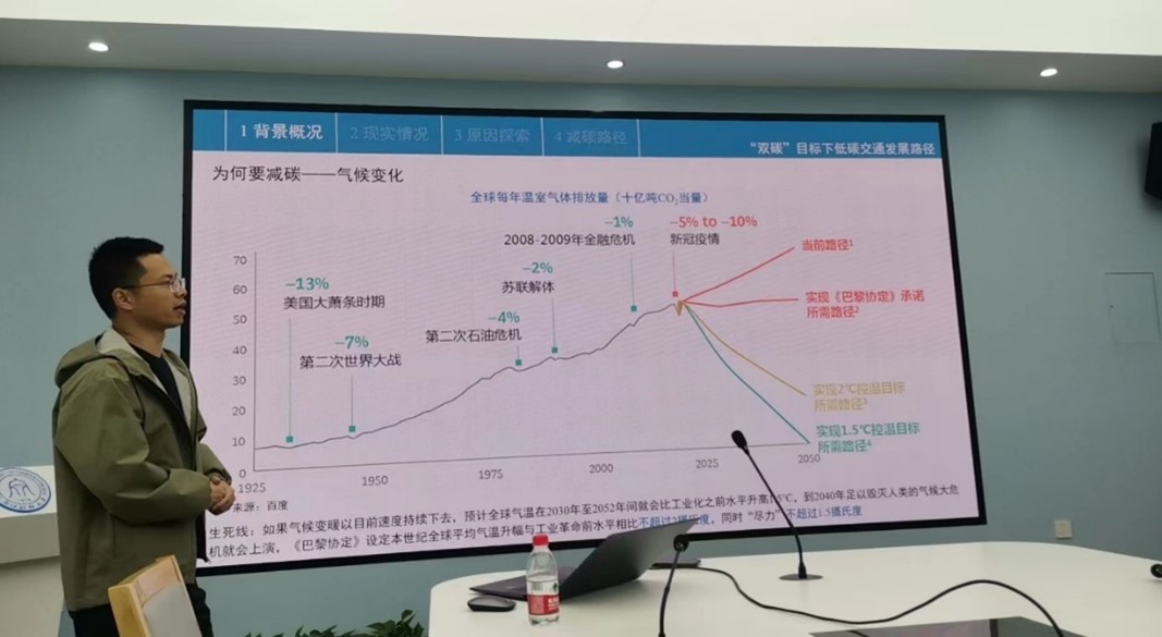 在5-416会议室举办了本学年第二期学术沙龙活动。供应链管理系的诸立超老师作了专题为“‘双碳’目标下低碳交通发展路径”的学术报告。