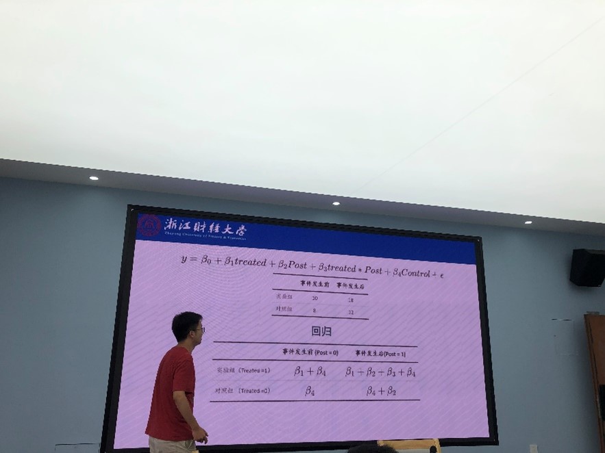 邓浩然老师首先详细介绍了自己的研究工作,对经典双重差分及多时点双重差分在经管研究中的应用进行了案例和论文的讲述,他深入浅出的讲解激发了现场老师的方法应用兴趣。