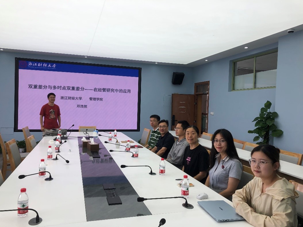 在5-416会议室举办了本学年第九期学术沙龙活动。企业管理系的邓浩然老师作了专题为“经典双重差分及多时点双重差分在经管研究中的应用”的学术报告。本次活动由数字化转型与创新研究中心主任孙凯教授主持,学术院长马祖军教授及番茄小说