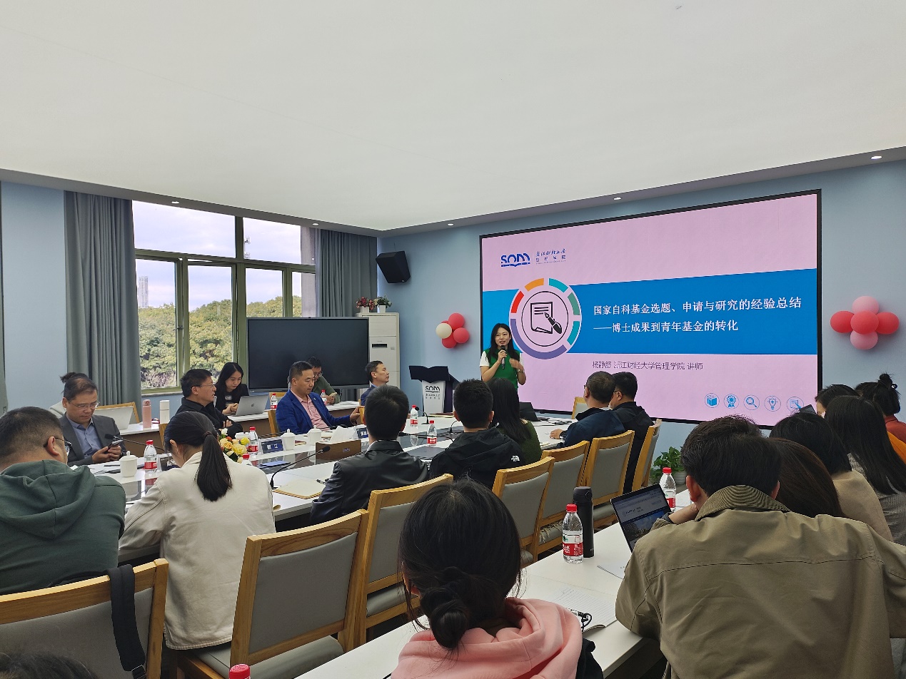之后,2024年获得国家课题立项的周丹副教授、冯娟博士、黎静仪博士、杨静舒博士受邀分享申报经验。四位老师基于自身申报经历,从如何选题、如何破题、如何谋篇布局以及如何科学安排时间等方面展开了分享。