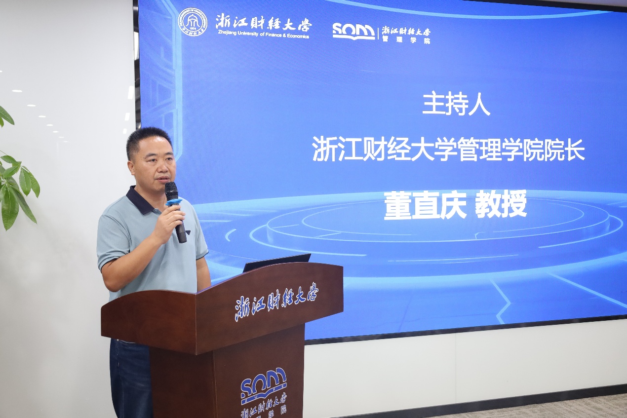 院长董直庆教授担任开幕式主持。董直庆教授指出,在人工智能时代背景下,大数据技术正深刻重塑生产与生活的形态,这促使我们重新思索未来生产生活的新方式,探寻能享受技术红利、实现快速成长的企业特质,以及生产经营活动中产生的大量数据能否有效转化为推动发展的核心价值。基于这些需要深入探讨的关键议题,希望借助此次研讨会汇聚多方智慧,共同拨开迷雾、明晰方向。
