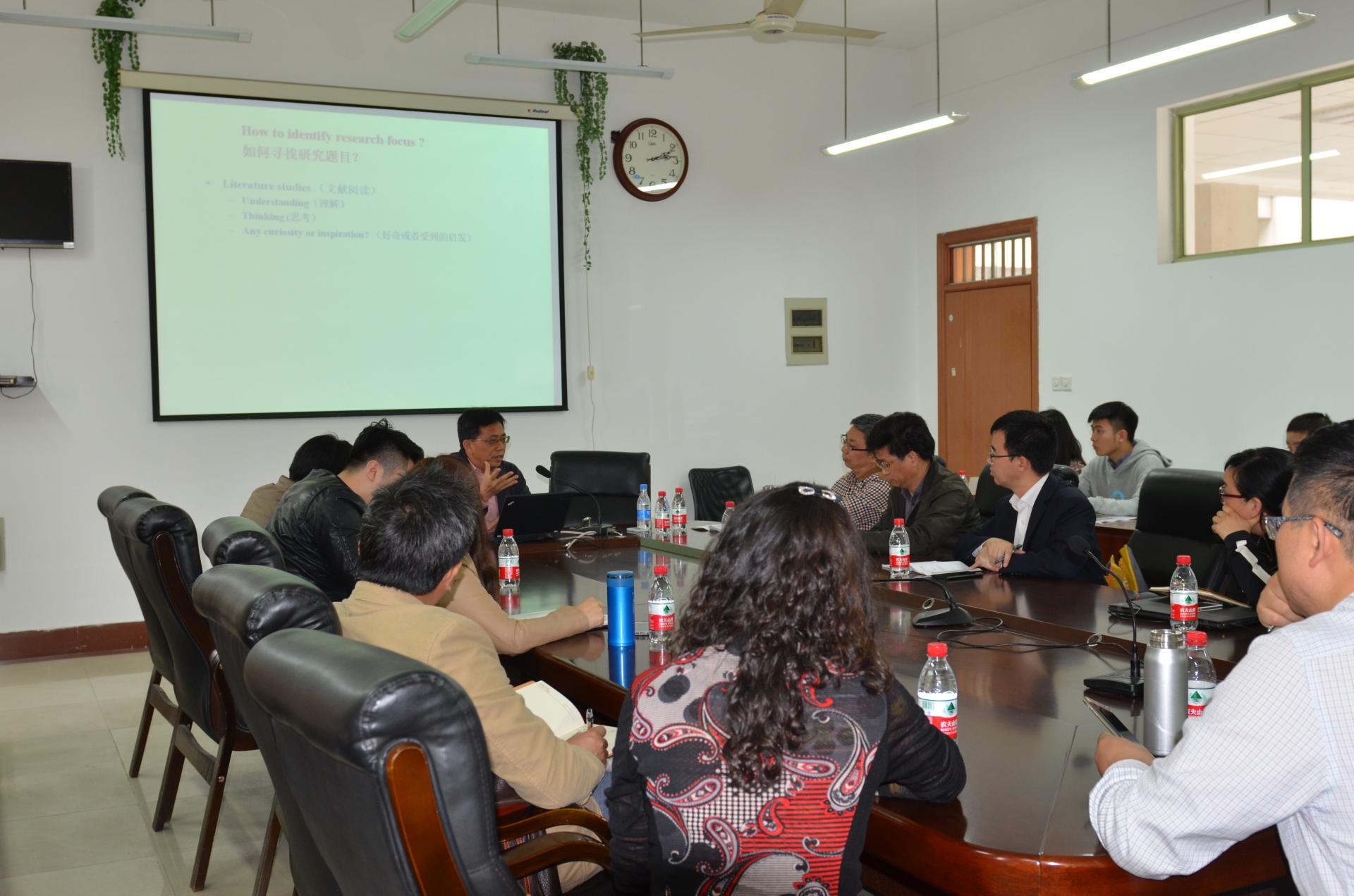 在学院楼410会议室召开了2015-2016学年第二学期第四期学术沙龙。重庆大学特聘教授、博士、博士生导师,香港理工大学申立银教授作了题为《研究方法与国际期刊论文写作交流》的主题演讲。董进才院长、黄卫华书记、学院教师、企业管理和技术经济管理专业研究生20多人参加了本次学术沙龙。学术沙龙由院长助理王建明教授主持。