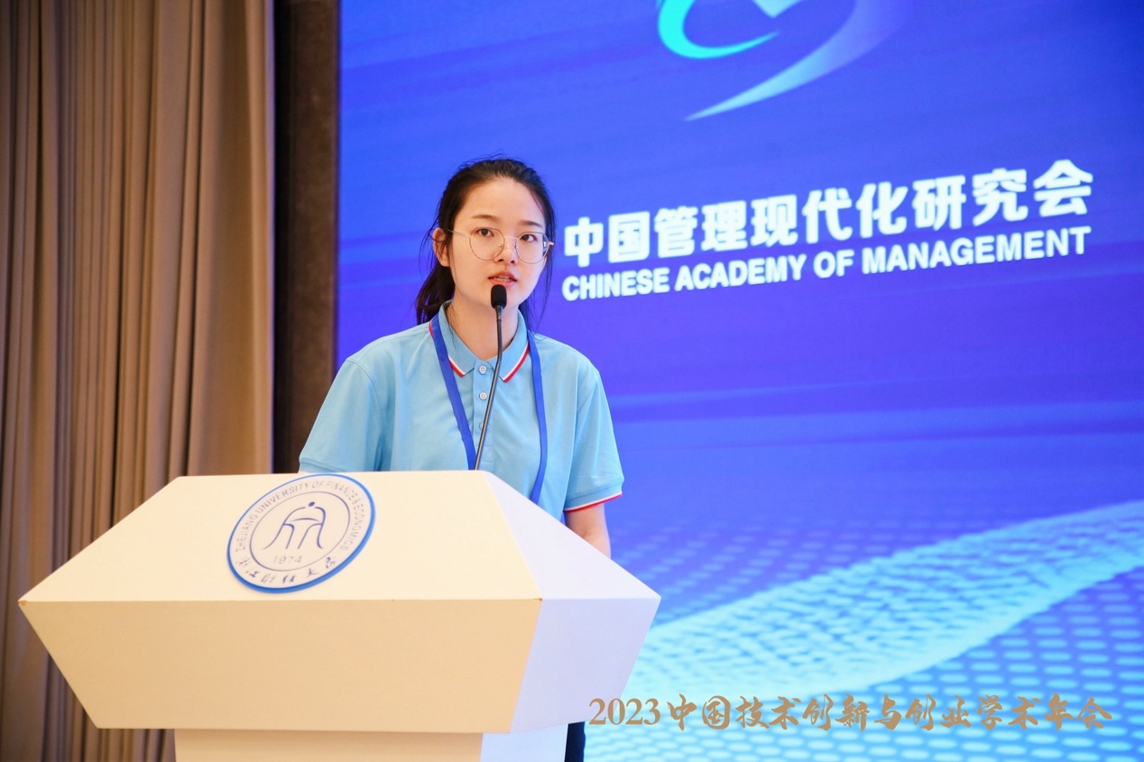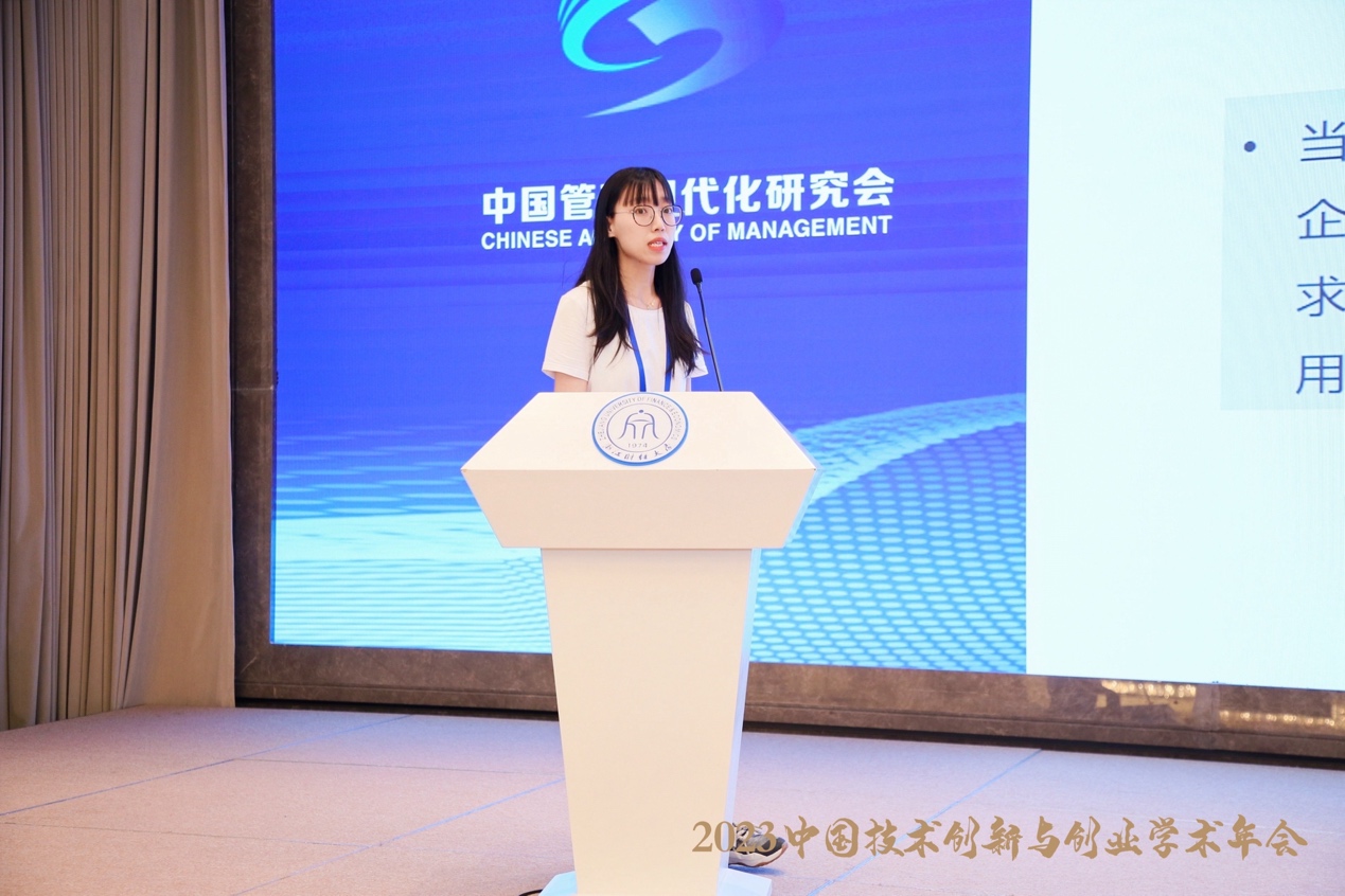 的胡双,她的报告题目为“高管团队的创业导向、企业的数字化转型与创新绩效”。研究着重探讨:以企业CEO为核心的高管团队的创业导向以及其企业层面的后果。并将企业数字化转型、高管团队的创业导向等核心构念进行了细致区分。她认为,创新是推动国家经济改革和发展的重要力量,企业应承担并发挥创新主体的作用。