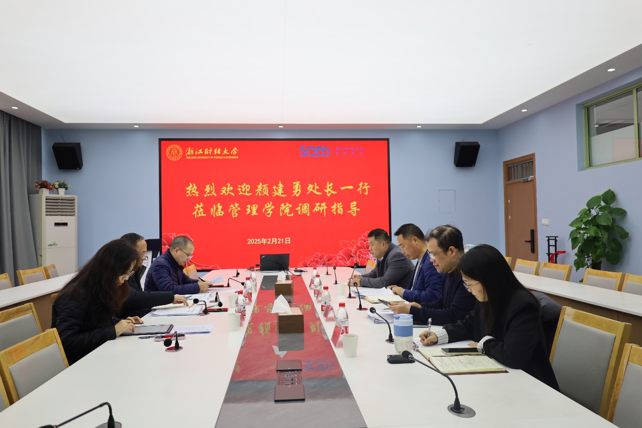 学科高质量发展表示认可,强调要持续做强工商管理学科和管理科学与工程学科,始终注重以才引才,有序做好学科评估工作,充分利用学校“一院一策”制度为学科谋发展,积极为学校新学科建设建言献策。颜建勇处长还针对学院学科发展中存在的问题和困难提出了具体的指导意见。