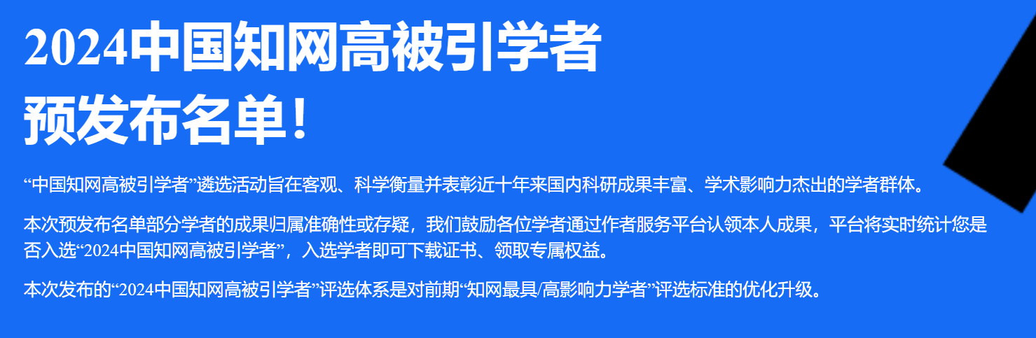近日,中国知网公布了“2024中国知网高被引学者预发布名单”,该名单基于中国知网收录的国内学术成果,首次开展学者学术影响力客观评价,旨在客观、科学衡量并表彰近十年来国内科研成果丰富、学术影响力杰出的学者群体。
