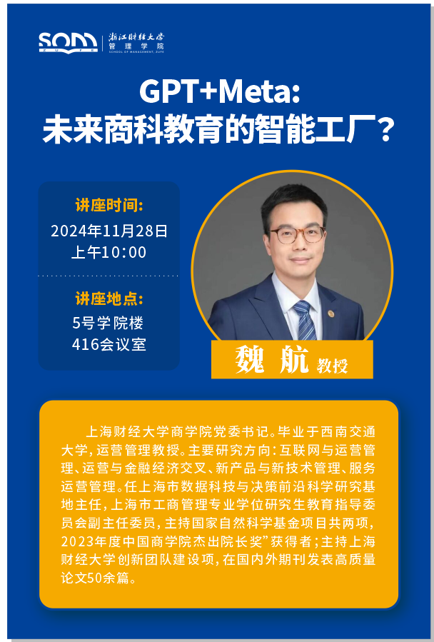 【讲座预告】魏航:GPT+Meta:未来商科教育的智能工厂?
