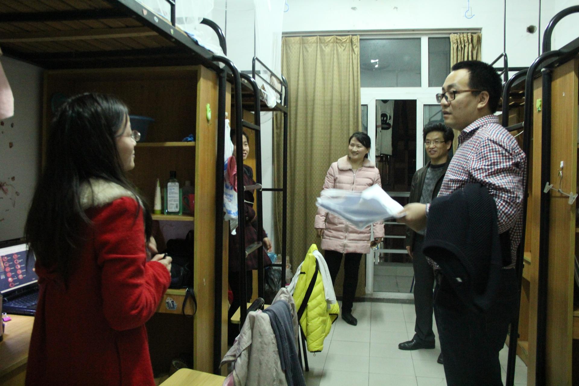 文明寝室建设,积极配合省教育厅到我校全面检查工作,学院领导于2016年3月7日晚到成蹊苑生活园区进行了寝室大检查,参加此次检查工作的领导有学院院长董进才老师、党委书记黄卫华老师、副院长谢敏老师,以及学办主任胡星平老师、团委书记刘远琳老师以及辅导员俞佳、喻一珺、余亮等老师。他们分别对成蹊苑51#、49#、57#、31#、44#、48#等工商番茄小说