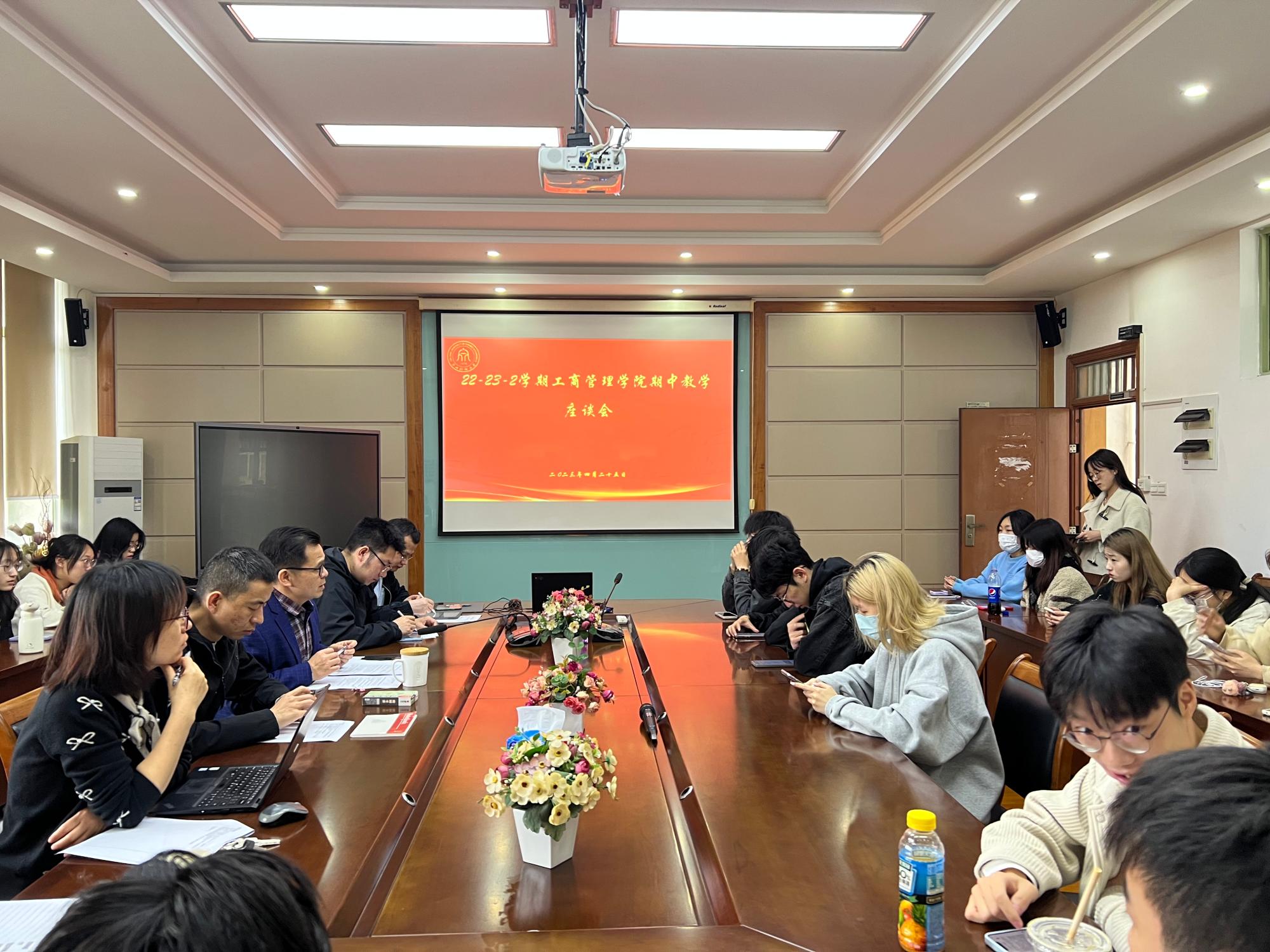 组织召开学生座谈会。学院本科生教学督导组组长郭军灵、督导组成员林与川、高友江、项丽瑶、孔小磊等老师及20、21、22级各班级学生代表共同参加了本次座谈会。