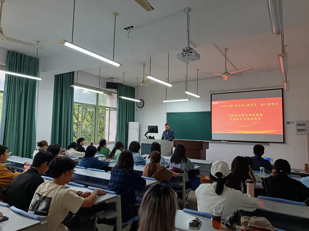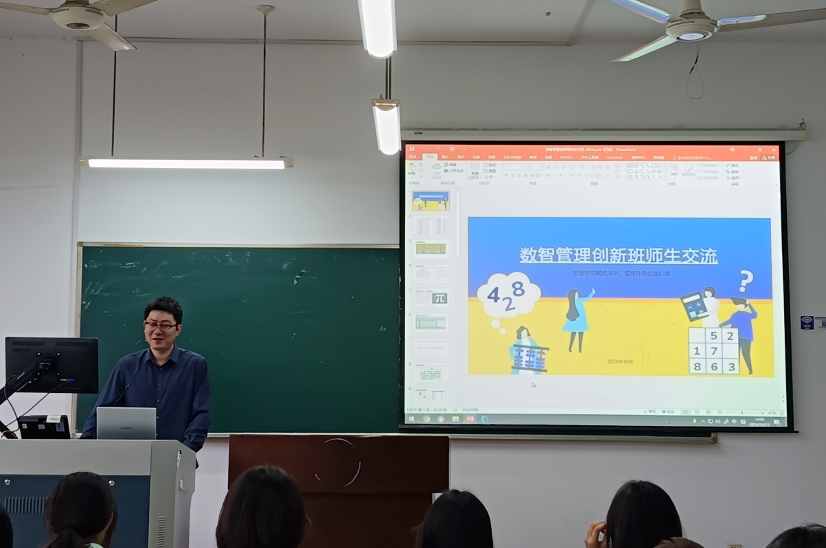 数智管理“铁三角”项目负责人张雷,党委副书记陈小芳,班主任吴丽民,沈渊,林与川,带班辅导员周依凡以及24级数智管理全体学生共同参与了这次活动,本次活动由沈渊教授主持。