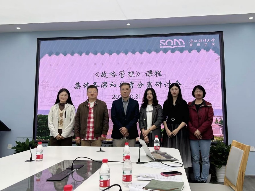 为响应学校“新财经战略”,建设新培养体系,提高教学水平和人才培养质量,2024年10月31日下午,《战略管理》课程组在学院416开展了教学研讨活动。课程组成员戴维奇、周丹、孔小磊、赵雨菡、罗兴武、吴赛赛等老师和企管系主任赵昶参加了研讨会。会议由课程负责人俞萍萍主持。