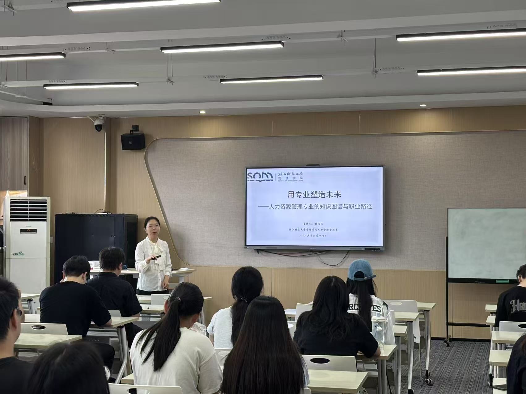 为帮助23级人力资源管理专业学生更加深入地了解专业情况以及专业职业路径,激发专业学习热情、明确自身发展方向,6月17日,人力资源管理系在5-411教室开展了题为“用专业塑造未来——人力资源管理专业的知识图谱与职业路径”的专业教育活动。