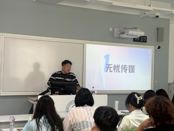 活动伊始,无忧传媒短视频负责人朱亚斌先生便以其深厚的行业洞察,为同学们带来了新媒体行业的深度剖析与实战技巧。他以无忧传媒的爆火KOL为例,系统讲解了从爆款内容打造到个人IP塑造的方法论,并详细介绍了无忧传媒的业务实力、成熟的IP孵化体系,以及成为合作KOC的具体路径、支持政策与丰厚回报,简直就是干货满满!这瞬间点燃了现场同学们的求知热情。大家全神贯注,踊跃提问,热烈探讨着新媒体创作的各种可能性。