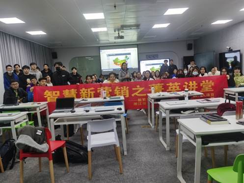 智慧教室E517《市场营销学(双语)》课程中,开展了一场别具一格的营销模拟决策对抗赛。深圳市因纳特科技有限公司何星和经理通过线上会议的形式参与。报告活动由浙江省“十三五”大学生校外实践教育基地、浙江省“十三五”省级产学合作协同育人项目、教育部高等教育司产学合作协同育人项目联合承办,市场营销系主任陈颖副教授授课,市场营销课程同学参与课程学习。
