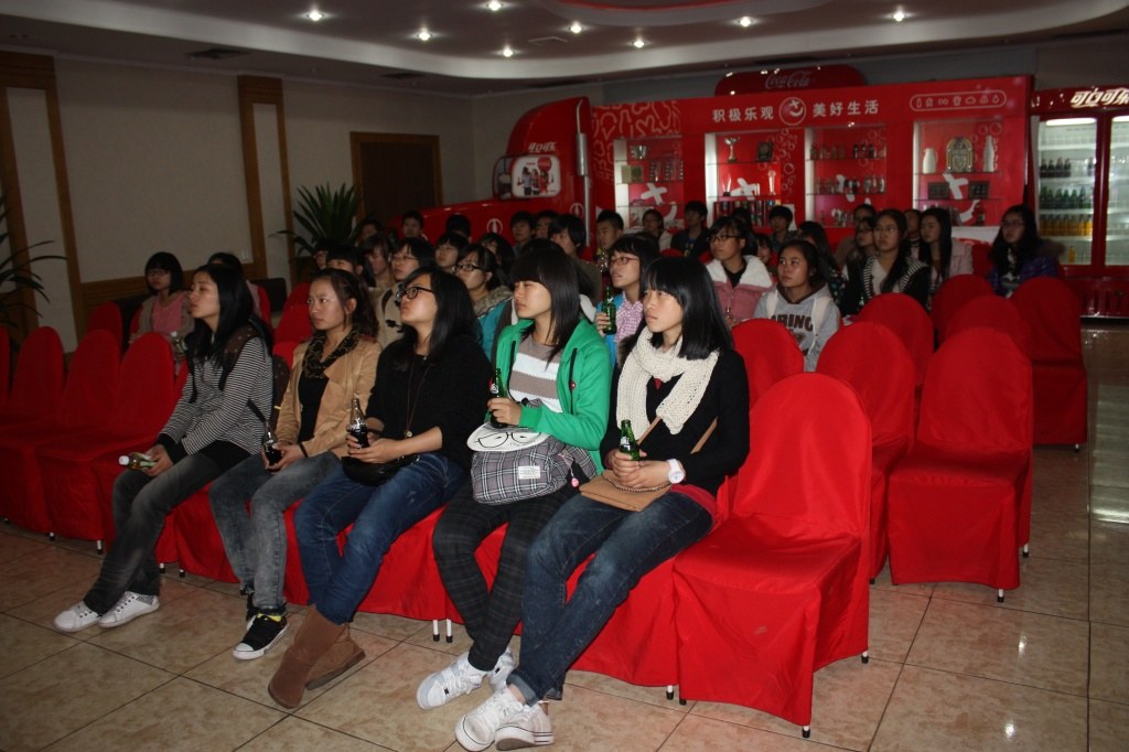 下午一点半,在市营协会会长杨程程的带领下,参观的40个同学来到了杭州中萃食品有限公司。该公司是一家生产、销售可口可乐系列饮料的装瓶厂,1987年正式开业,到目前为止已在浙江省各地设立了69个销售分公司和办事处,销售网络遍及全省。按照领导员的指示,同学们先到展览厅观看入厂安全须知以及公司宣传片。接着,由专人带队观看生产流程并进行讲解。讲解员绘声绘色的演说给大家留下了深刻的印象,也让大家对企业品牌价值和文化价值有了一些认知。